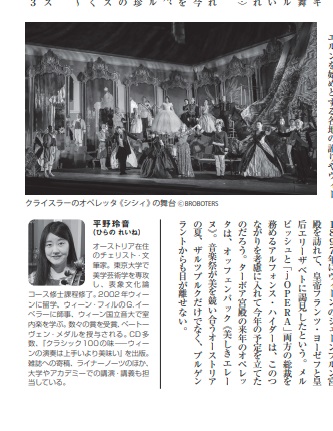 『音楽現代』2019年8月号に、著書『クラシック100の味――ウィーンの演奏は上手いより美味い』の書評が掲載されました。 「ウィーン在住の女流チェリストでチェロとエッセイという『二刀流』で活躍する平野玲音がクラシック音楽とウィーンの味の本を出した……」 |